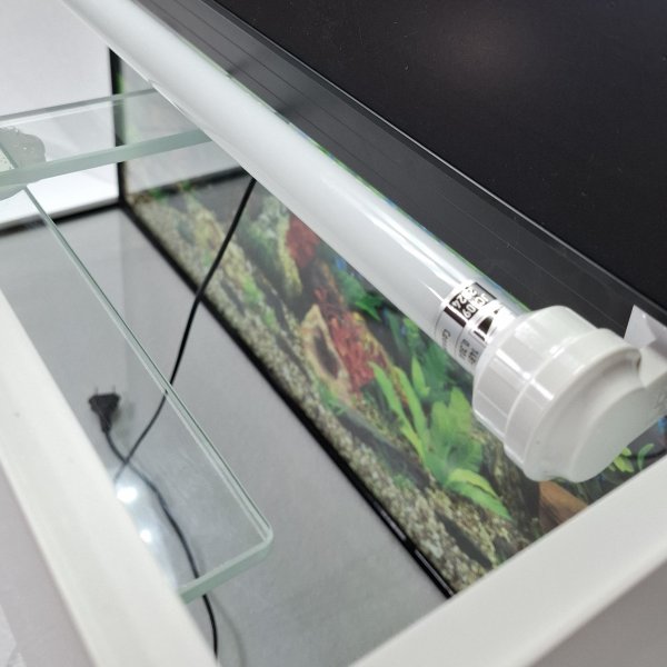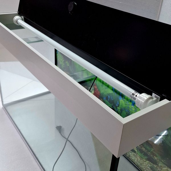 Крышка оснащена двумя светодиодными лампами длиной 90 см, обеспечивающими оптимальное освещение для растений и рыб. Аквариум подходит для создания уютного подводного мира и может стать прекрасным украшением интерьера вашего дома или офиса.