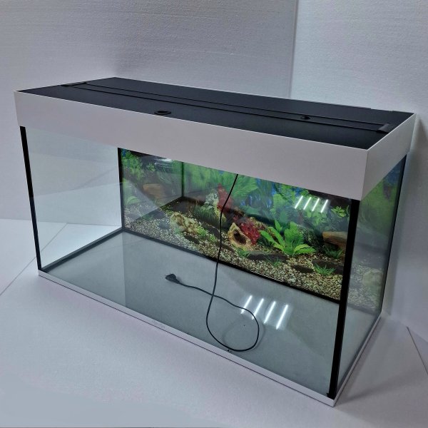 Крышка оснащена двумя светодиодными лампами длиной 90 см, обеспечивающими оптимальное освещение для растений и рыб. Аквариум подходит для создания уютного подводного мира и может стать прекрасным украшением интерьера вашего дома или офиса.