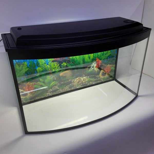 в комплекте имеет крышку с тремя патронами е14, и выключателем на крышке. На крышке аквариум для удобного кормления рыб имеется отверстие для кормления.