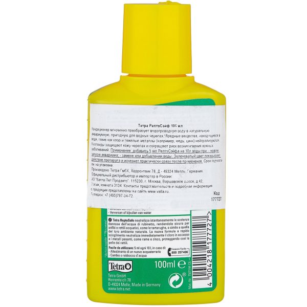 Быстрорастворимое средство Тетра РептоСейф нейтрализует водопроводную воду и делает ее безопасной для водных пресмыкающихся, например водных черепах и земноводных.
