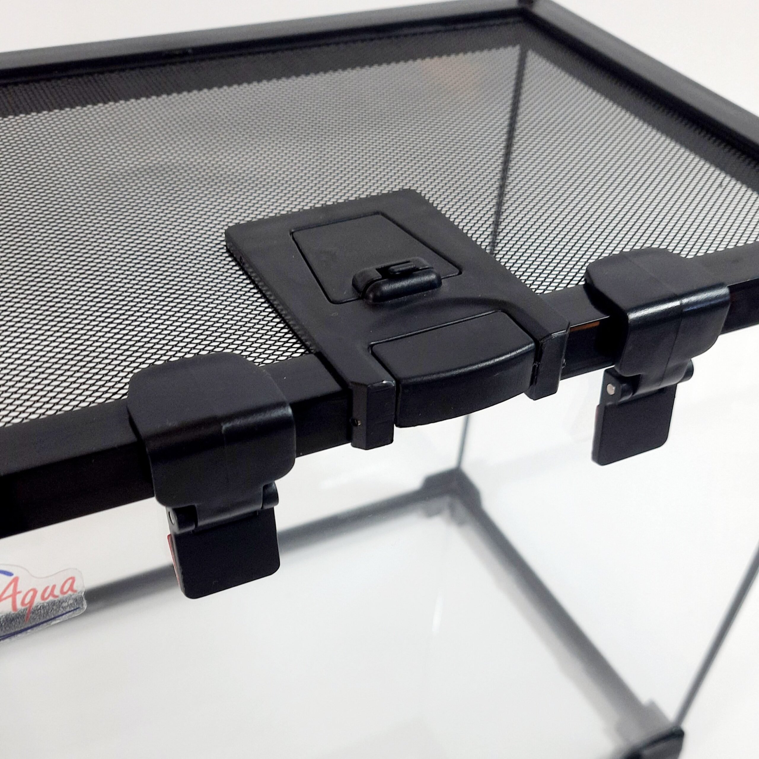 террариум имеет вентиляционную верхнюю сетку, с открывающимся лючком для кормления.