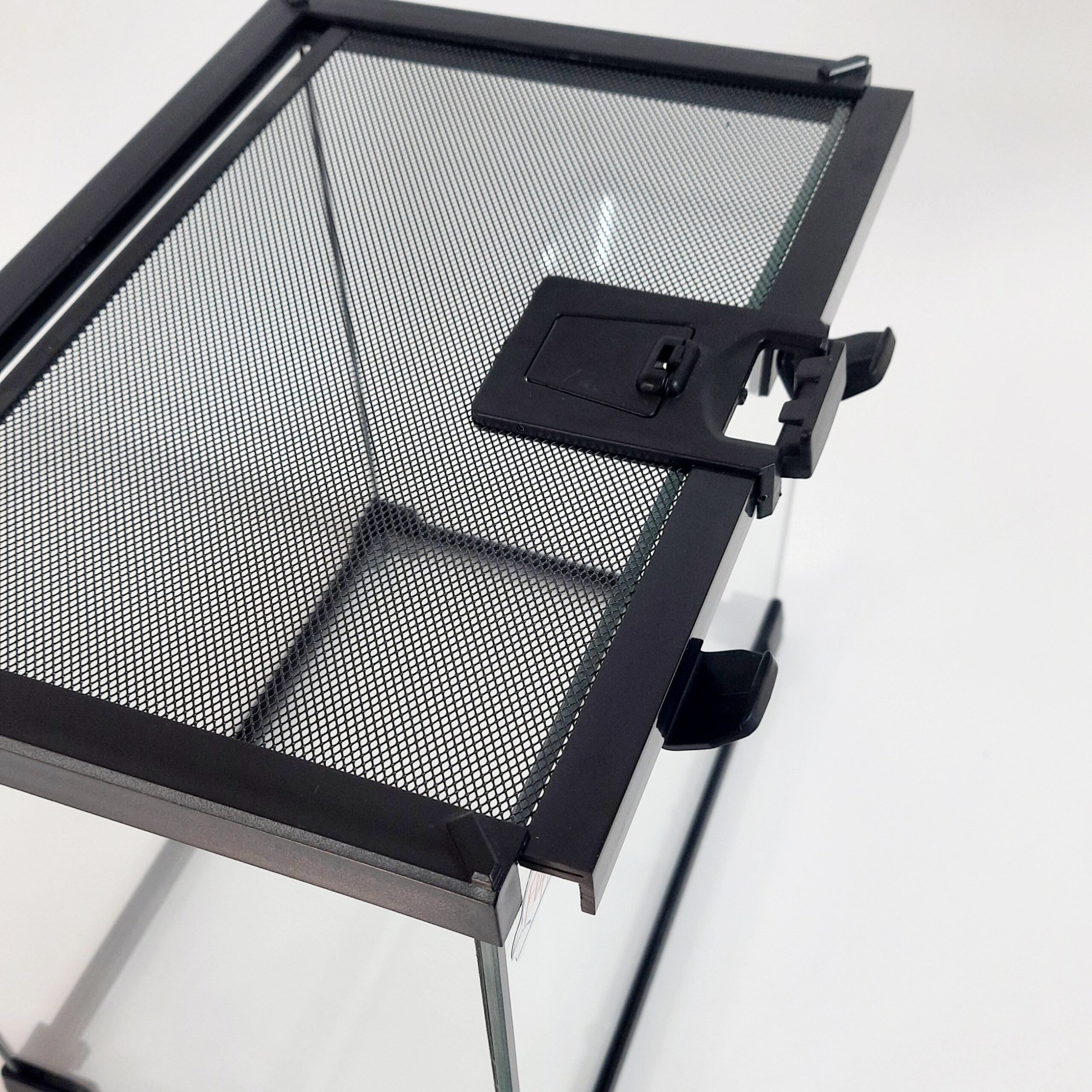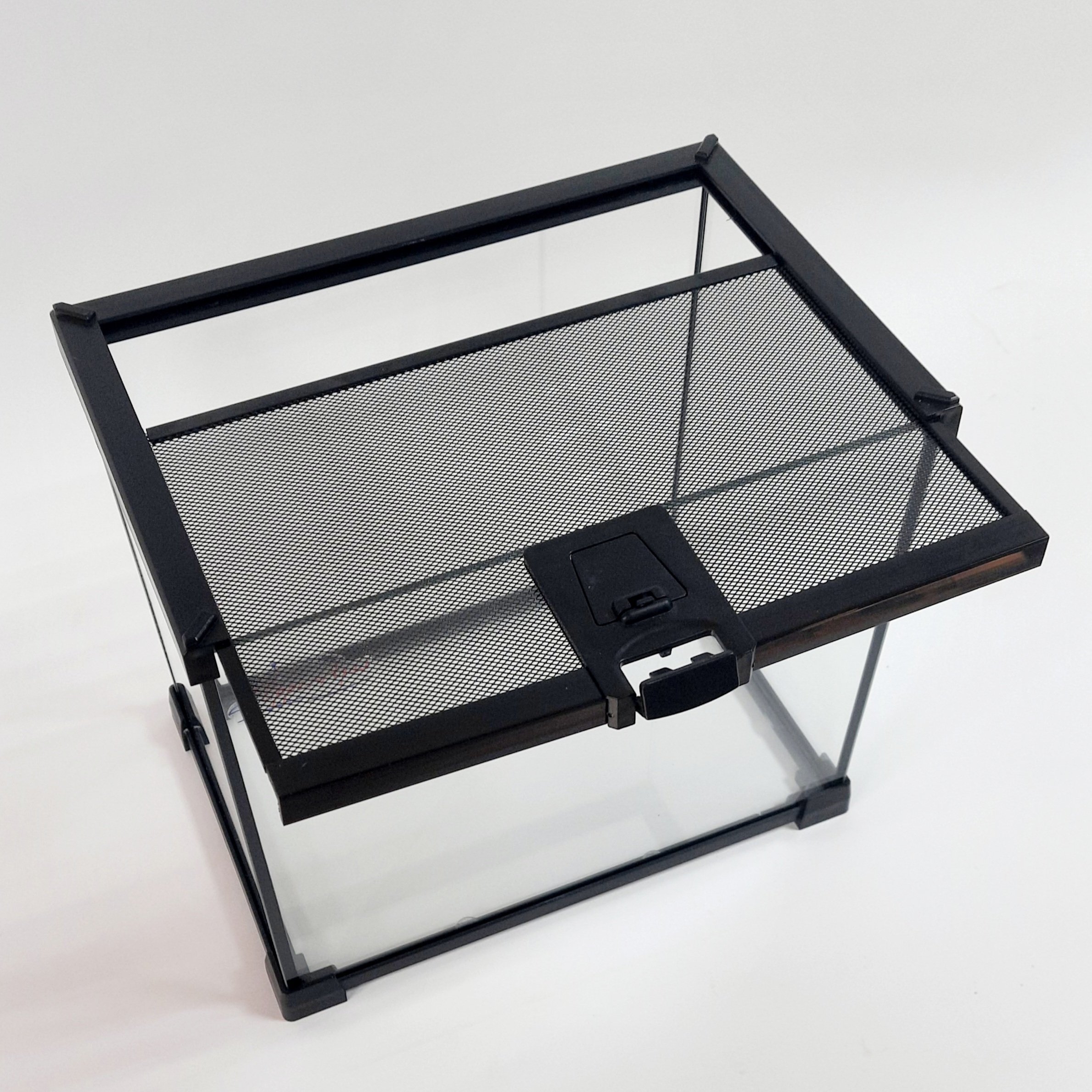 террариум имеет вентиляционную верхнюю сетку, с открывающимся лючком для кормления.