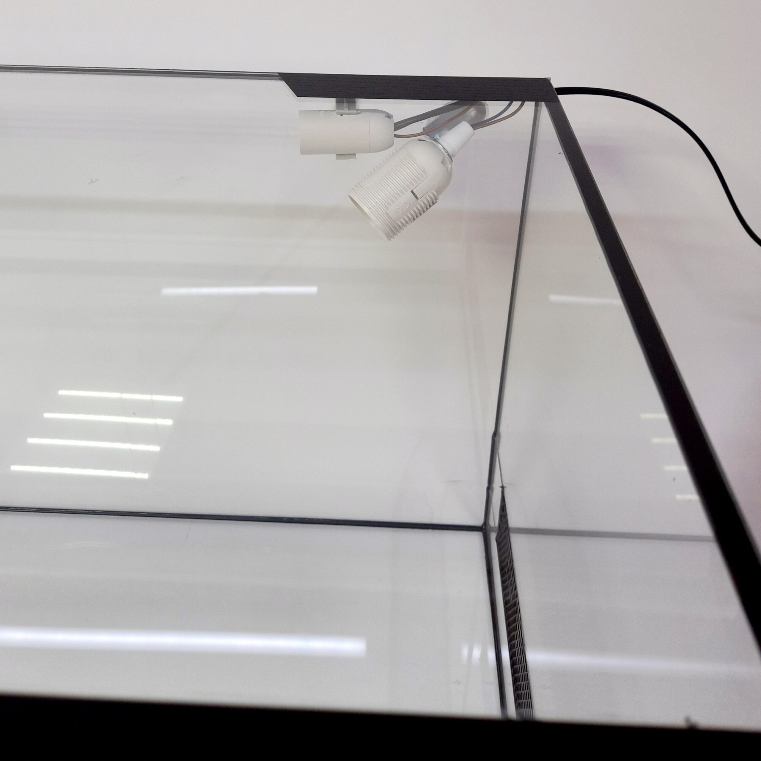 террариум для рептилий 90х40х40 с раздвижными дверцами и проточно-вытяжной вентиляцией на боковых стенках. Высококачественная сетка не поддается коррозии со временем. Качественная вклейка сетки позволяет безопасно использовать террариум для любых рептилий. Бортик внизу террариума позволяет не высыпаться субстрату, что облегчает эксплуатацию. Раздвижные дверки для удобства можно полностью снять, это большой плюс при декорировании и чистке террариума. В комплекте установлено один патрон е14 для освещения террариума и патрон е27 из термостойкого пластика для УФ лампы. дополнительно вы можете заказать любое количество патронов для ламп.