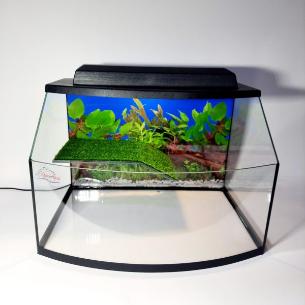 В комплекте террариум поставляется с крышкой, в крышке имеется патрон е14 (под светодиодную или энергосберегающую лампу), островок покрыт зеленой искусственной травой.