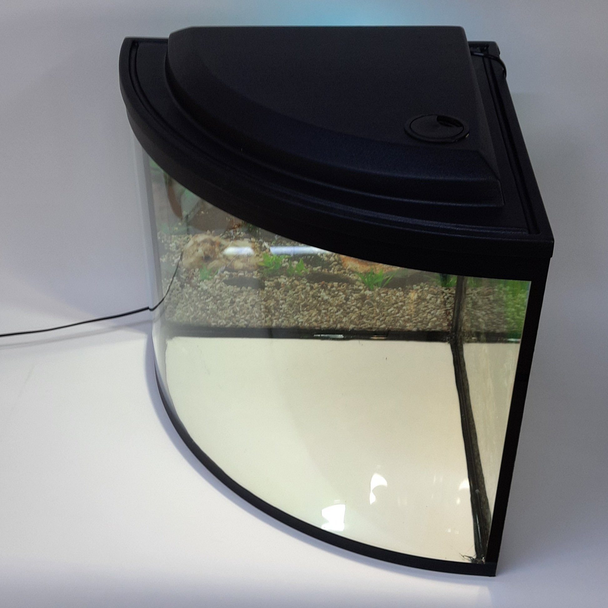 Угловой аквариум 50х50х50 имеет форму кругового сектора со стеклом радиусом 50см. идеальный аквариум с точки зрения визуальной составляющей.